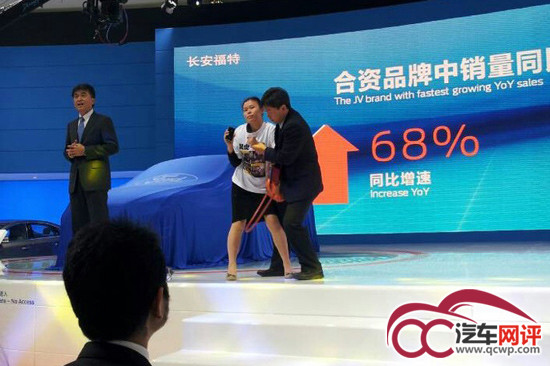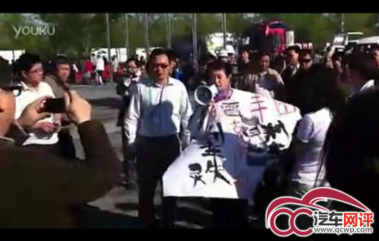 2013年上海車展,數(shù)位購買了雪弗蘭SUV卻因車輛實(shí)測參數(shù)與國家發(fā)改委公告的參數(shù)、隨車配發(fā)的參數(shù)不符而無法上牌的車主在通用展位進(jìn)行維權(quán)。