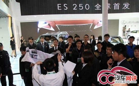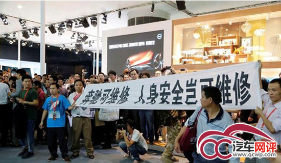 2012年北京車展,一對夫婦來到雷克薩斯展臺前手舉標(biāo)語進(jìn)行維權(quán),并于工作人員發(fā)生沖突。