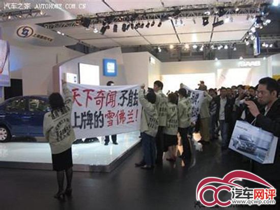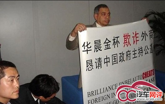 2007年上海車展,中一位高舉“華晨金杯欺詐外商”大牌子的外籍人士出現(xiàn)在華晨金杯展臺前。