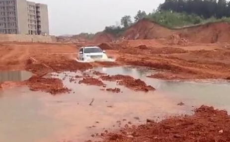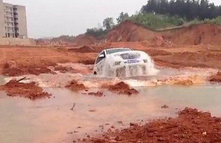 這是一個大概有半米深的水坑,而且還十分泥濘,在上面行車一個不小心就會陷入泥里甚至熄火。只見這輛哈弗H9完全不虛,直接就沖了下去。