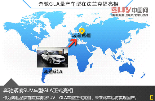 德國法蘭克福報道,2013年年上海車展期間,奔馳GLA的概念車首次亮相,在隨后不到半年的時間奔馳于法蘭克福車展首發了GLA量產版車型。宣告奔馳正式進入緊湊級SUV細分市場,與奧迪Q3、寶馬X1等車型展開競爭。車展現場,編輯采訪了奔馳全球銷售負責人阿希姆·施密特先生,對于GLA這款車型施密特給予了高度的期待。