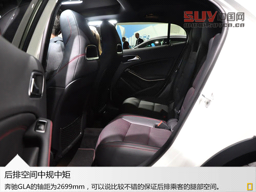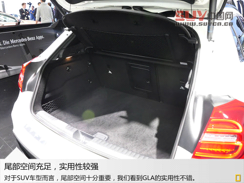 在車輛空間方面,奔馳GLA雖然作為一款緊湊級SUV車型,但是其內部空間設計合理,讓駕駛員與乘客都不會感覺到壓抑感。從上面兩張圖中我們可以看出,奔馳GLA在后排空間上空間還算充足,其接近2.7米的軸距可以說為車輛后排空間提供了保證。另外在尾部空間上,其標準狀態行李箱容積達到421升,而放倒后排座椅更是達到了836升,完全可以滿足日常使用。