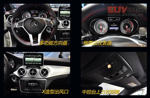 在車輛內飾方面,當我們坐進GLA中,我們發現奔馳最新的設計元素撲面而來,多功能方向盤,炮筒式的儀表盤,帶有鮮明特征的X造型出風口,都可以讓人一眼辨認出這款車的品牌。座椅中央的坐墊采用高品質帆布材料,其顏色與突起的手工縫線完美呼應,這些元素使得整體座椅在運動時尚的風格之中還彰顯著的古典氣質與奢華的質感。