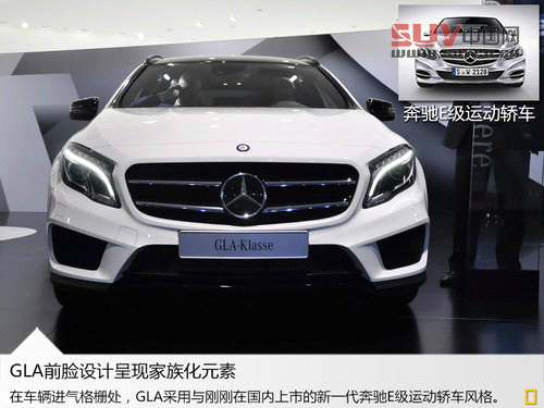 在外觀方面,奔馳GLA量產版同與此前上海車展亮相的概念版車型相比,外觀看上去略微低調了一些。在延續了A級年輕化、運動化的設計基因,其獨特的扁平化車身設計使得GLA從外觀上讓人印象深刻,其也將成為奔馳在華市場中新的“符號”。