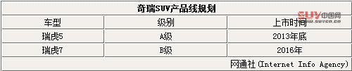 其中瑞虎系列為SUV產品,而在該系列中將涉及多個級別的不同產品,根據這一點奇瑞汽車總經理助理兼銷售公司總經理黃華瓊向網通社介紹:在2016年我們將推出中型SUV。同時網通社從奇瑞內部人士處了解到:“奇瑞中型SUV或將命名為瑞虎7,屆時將與長安CS75等車型競爭。”