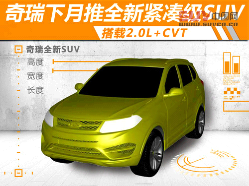 隨著國內SUV市場的火爆,許多品牌推出了多款車型,奇瑞旗下一直以來只有瑞虎這一款SUV車型。近日,奇瑞汽車股份有限公司總經理助理黃華瓊在接受網通社采訪時表示,奇瑞三年內將有三款新車上市,其中今年年底瑞虎5上市。與此同時,網通社從國家知識產權局了解到:新車采用全新外觀設計,車身尺寸較瑞虎明顯加大。新車最快將于10月份上市,初期將搭載2.0升發動機與CVT變速器。