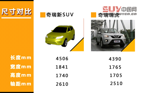 從公布的車身尺寸上看,新車較現款瑞虎有明顯提升,達到了緊湊級SUV水平。整車憑借2610mm的軸距和1740mm的高度提升內部空間,使乘坐者可以得到更好的乘坐體驗。