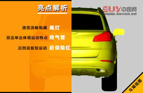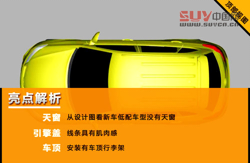 設計圖上看新車低配車型沒有天窗,但是車頂行李架應該是全系標配,同時采用了凸起的防滑設計,可以很好的固定車頂行李。新車車尾線條流暢,尾燈造型飽滿,后保險桿部分采用了大面積的擋泥板,搭配雙邊單出的排氣管,在視覺上給人以非常運動的感覺。