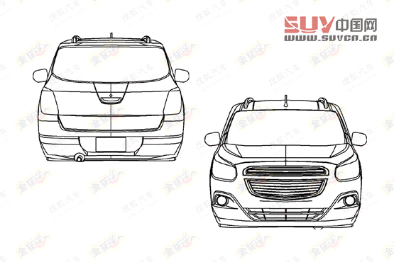 外觀方面,通過辨識度很高的分割式盾型散熱格柵我們就能確定新車屬于雪佛蘭品牌,并且格柵尺寸幾乎占新車整個前臉的二分之一面積。通過新車車側的申報圖,估算新車軸距大約在2.5米左右。尾部造型方面,兩側采用略微圓滑過渡的設計,車尾下端接近矩形,從申報圖中我們并沒有看到備胎的圖形,所以預計新車備胎將直接安置于車內或車底部。