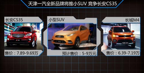 通過全新的動力組合和安全配置,天津一汽全新品牌的首款SUV將與目前市場上主流的自主小SUV抗衡,如長安CS35、長城M4等售價在6-10萬元的區(qū)間展開競爭。