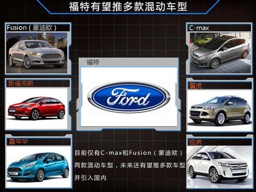 福特公司依靠旗下C-max(緊湊型MPV)和Fusion(美版蒙迪歐)兩款混合動力車型在去年1至5月全球實現銷量約3.7萬輛,與2012年同期相比,增幅十分明顯。而中國作為新能源領域的新興市場,相應車型較少,在競爭對手紛紛引入混動版車型后,福特也將引入混動版車型,競爭這一細分市場。近日福特公司研發業務負責人Raj Nair表示:目前在中國和歐洲等市場,對潔凈環保車型的需求不斷增長,福特到2020年將混合動力車產品數量增加一倍。為迎合中國消費者喜好,其未來將進一步豐富該領域車型,有望推出福克斯、嘉年華、翼虎等混動版,并引入國內市場。