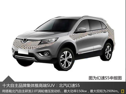 北汽集團今年將推出一個全新品牌北汽幻速,主要產品以SUV為主。今年這個全新品牌將推出一款高端SUV-幻速S5。新車長寬高分別為4583x1823x1678mm,軸距2700mm。動力方面,幻速S5將搭載北汽自主研發(fā)的2.0T渦輪增壓發(fā)動機,最大功率150kw,最大扭矩為290Nm。該車有望于今年下半年上市銷售。