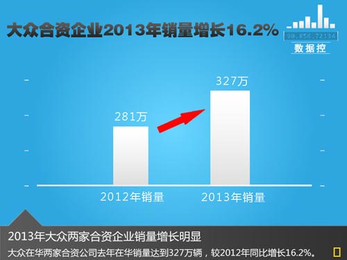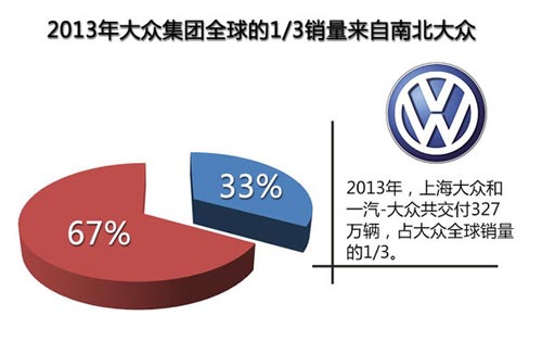 在剛剛過去的2013年,大眾集團全球的銷量達到970萬輛,相比2012年,增長接近5%。根據(jù)大眾汽車公布的銷售數(shù)據(jù)顯示,大眾旗下兩家合資公司上海大眾和一汽-大眾共交付汽車327萬輛,同比增長16.2%。不難看出,大眾在2013年全球銷量中,一汽大眾與上海大眾的銷量占據(jù)1/3的市場。加速在國內(nèi)市場的發(fā)展,將對于大眾集團在全球的戰(zhàn)略,起到重要的作用。