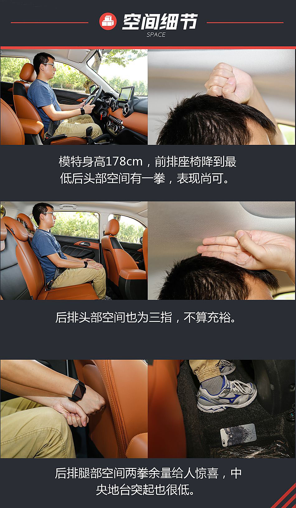 定位于X25和X55之間,紳寶X35擁有4300mm的車長(zhǎng)和2570mm的軸距,達(dá)到了國產(chǎn)小型SUV的主流水平,后排腿部空間達(dá)到兩拳寬,令人較為驚喜;后排中間座椅地板基本上是平的,滿載時(shí)中間乘客也不會(huì)覺得太憋屈。