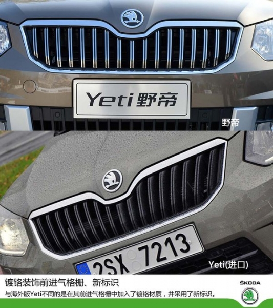 海外版新款Yeti的外形擁有城市和越野兩種不同版本,而野帝的整體設(shè)計(jì)更偏向于海外版新款Yeti的越野版,引入了斯柯達(dá)全新的簡(jiǎn)約式外觀(guān)設(shè)計(jì)風(fēng)格,并且進(jìn)行了一些小改造。車(chē)身的整體線(xiàn)條較硬朗,與其“硬派SUV”的稱(chēng)號(hào)相互輝映,沉穩(wěn)中帶著些許個(gè)性。