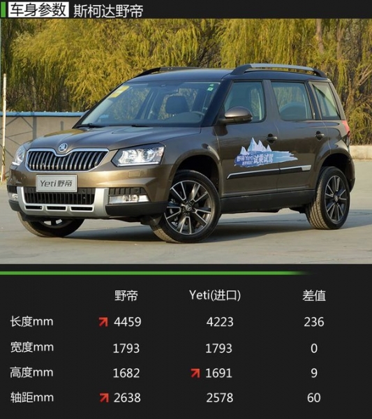 在上海大眾斯柯達(dá)實(shí)現(xiàn)國(guó)產(chǎn)后,野帝在車(chē)身尺寸方面均作出了改變,那么先了解一下這方面情況,另外我們還將告訴大家與海外版新款Yeti的區(qū)別。野帝的長(zhǎng)寬高分別為:4459mm/1793mm/1682mm,比海外版新款Yeti在高度上降低了9mm,但在長(zhǎng)度上以及消費(fèi)者較為關(guān)心的軸距上均增加60mm,可見(jiàn)充分考慮到中國(guó)消費(fèi)者的用車(chē)需求和偏好。