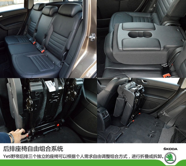 野帝提供的后排座椅自由組合系統(tǒng)在同級(jí)車(chē)?yán)镆勃?dú)具特色。Yeti野帝后排三個(gè)獨(dú)立的座椅可以根據(jù)個(gè)人需求自由調(diào)整組合方式,按照40/20/40比例進(jìn)行折疊或者拆卸,中央座椅靠背放倒后能變成寬大扶手,拆卸下來(lái)的座椅更可以在野外作為臨時(shí)坐墊使用,實(shí)用性非常強(qiáng)。如果選擇后掛式備胎,行李箱常規(guī)狀態(tài)下容積為430L,如果將后排座椅完全放倒,容積可達(dá)到1630L。