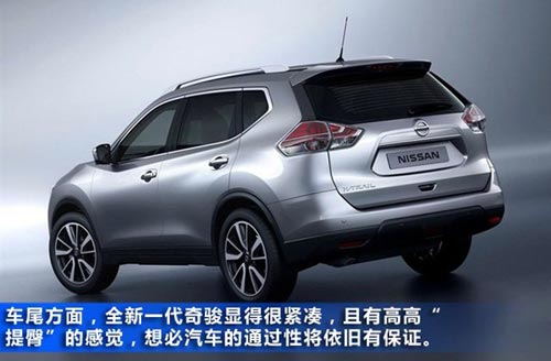 _ueditor_page_break_tag_車尾方面,全新一代奇駿顯得很緊湊,且有高高“提臀”的感覺,想必汽車的通過性將依舊有保證。尾燈方面,現款奇駿的豎立式設計改成了菱形設計,同時還增加了LED光源。此外,新車車尾的頂部增加了擾流板。