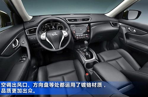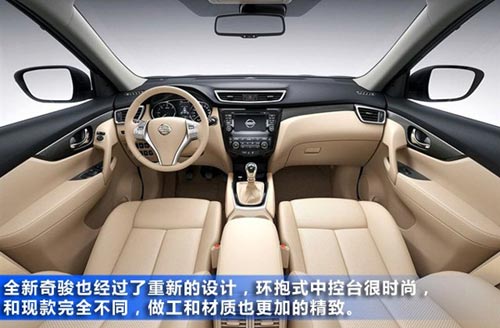 內飾方面,全新奇駿也經過了重新的設計,環抱式中控臺很時尚,和現款完全不同。同時,新奇駿的做工和材質也更加精致了,例如在空調出風口、方向盤等處都運用了鍍鉻材質。這都與現款奇駿的“硬”和“粗”的設計完全不同。
