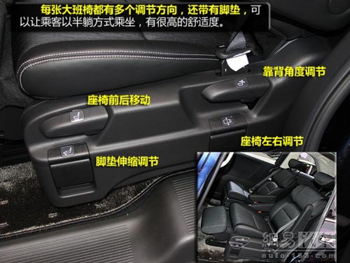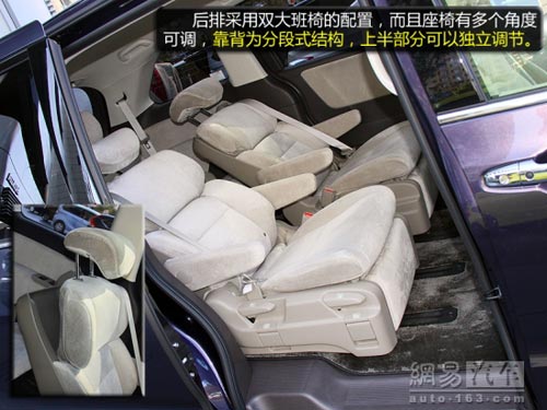 座椅的配置應該是這一代奧德賽的一個亮點,第二排的大班椅能讓乘客以半躺的方式乘坐,而且兩側配有扶手,靠背采用分段式調節,讓乘客以最舒服的方式乘坐。