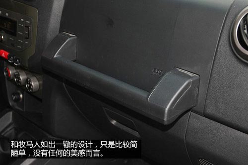 在一些娛樂配置上還算豐富,但是針對現(xiàn)在比較流行的2.0USB接口在BJ40上并沒有配備,依舊是采用1.0USB借口,很落后的設(shè)計,希望改進。很多的地方還是與牧馬人非常像,像不怕,至少能做的好看一些,比如手套箱上方的手扶支架,集合就是牧馬人的翻版,但是造型設(shè)計上并沒有美感而言。