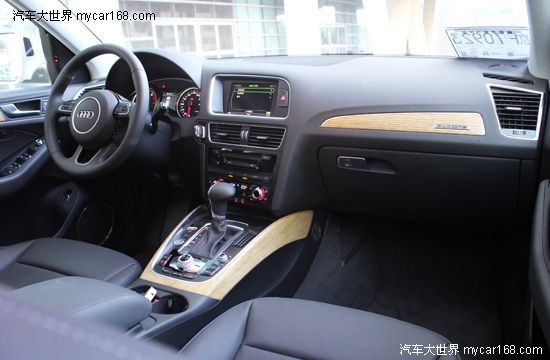 置身于車廂內,你會被一股熟悉而又時尚的氣息所感染,這均有賴于新奧迪Q5沿用以往慣有的設計格調,使得整個座艙充滿濃厚的科技感氛圍,或許這也是新Q5質感進化中的一部分。它通過環抱式的座艙設計,多處使用鍍鉻裝飾條及橡木飾條點綴,并使用大量軟質皮革材料進行表面包裹,用料與做工都相當不錯,讓人感受其無處不在的豪華氣息。