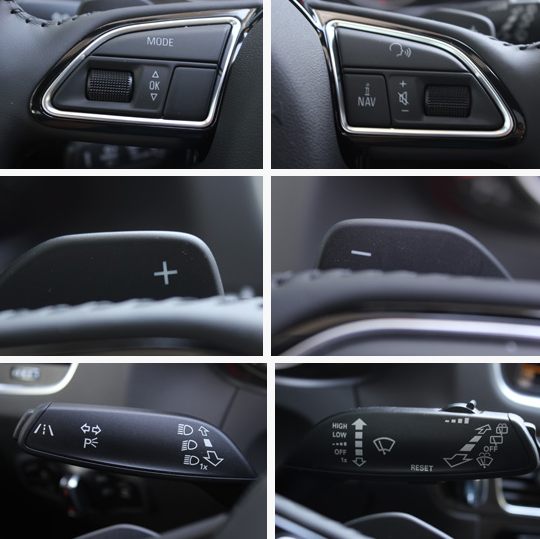 中控臺位置布局也相當簡潔,自上而下分別為7英寸彩色顯示屏、空調吹風口、娛樂設備及空調控制區域,錯落有致的風格也便于控制,可謂兩全其美。其中高清液晶顯示屏集成了倒車影像、3D導航、娛樂影音等系列功能。與布置在換檔桿后面的MMI多媒體交互系統控制界面搭配使用,發揮出具大的潛能,不論是車輛的基本設置抑或導航設定等,都貼近日常的使用習慣,給人貼心舒適的感受。