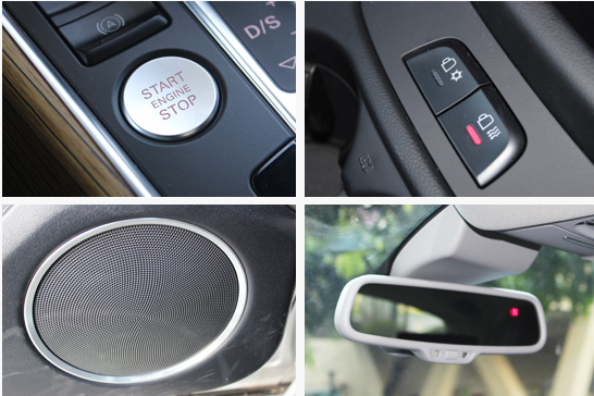 其它舒適便捷設備方面,也為整車的豪華氣息增加不少,如智能鑰匙/一鍵啟動、帶數字指南針自動防眩內視鏡、奧迪音樂接口、B&O高級音響、可加熱/制冷杯架、三區獨立自動空調、前排座椅電動調節及加熱通風功能等。如此功能配置,令人大為贊賞,相信不少消費者也是被其豐富便捷的配置所吸引的。