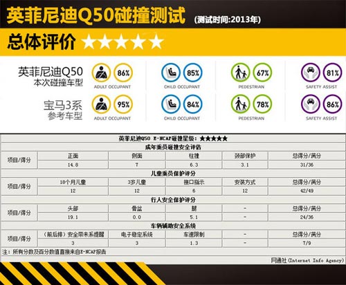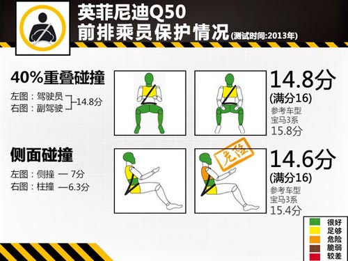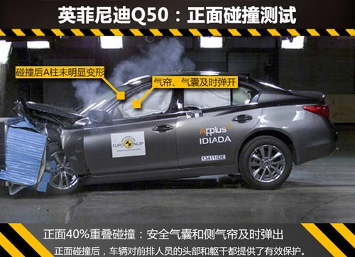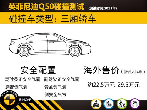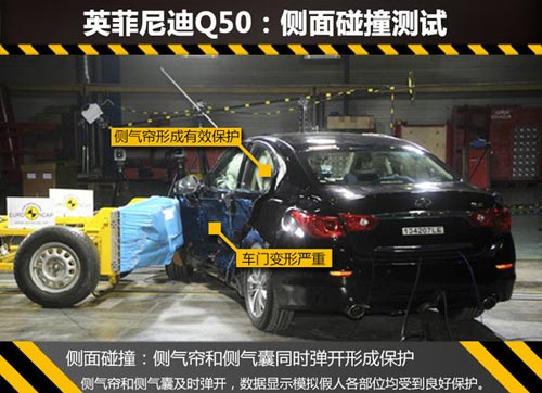 英菲尼迪采用全新命名后的首款轎車Q50將于明年正式進入國內(nèi)市場銷售。這款將上市的新車有著怎樣的安全性,也是眾多消費者所關注的。近日網(wǎng)通社獲悉,英菲尼迪Q50在歐洲進行了碰撞測試并公布成績。值得關注的是,新車在側(cè)面柱撞測試中由于側(cè)安全氣囊存在著隱患,以至對車內(nèi)人員保護有待提升。