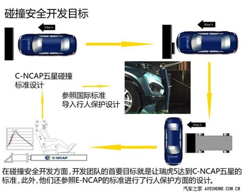 在他的帶領下,瑞虎5的整車性能圍繞著來自市場調研的結果進行開發,用戶對于這款定位于家庭的SUV車型在安全方面有著比較強烈的需求,這也是奇瑞下定決心在安全性能方面花費大力氣的動力。下面我們看看他們是怎么做的。