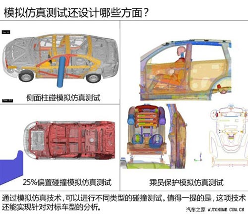 再來說說整車,相比于各個部件的測試,圍繞整車進行的仿真模擬試驗則有著更積極的意義,通過電腦模擬,開發人員即可獲得整車在各種碰撞條件下的車身狀態和數據,在開發過程中,基于成本考慮,整車的碰撞測試對仿真模擬試驗有著更強的依賴性。盡管成本是制約試驗的一個因素,但實車碰撞試驗在整個開發過程中仍必不可少。至于成本, 我們以瑞虎5為例,一款正處于研發階段的瑞虎5的整車成本在25萬元左右,進行一次實車碰撞的試驗成本在15萬元左右,再加上周邊的一些費用,進行一次實車碰撞試驗的成本在50萬元左右。