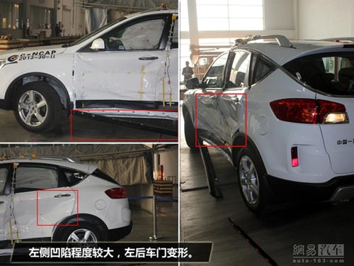 編輯點評:奔騰X80,在M1平臺基礎上進行加強,不僅繼承了M1平臺的精準操控,還增加了SUV車身剛度(采用了加強型3H車身結構,車門防撞梁抗拉強度超過1200Mpa),保證了碰撞過程中乘員的安全性,盡管如此,在此次碰撞中的正面碰撞和偏置碰撞時,后排假人運動幅度較大,有明顯右傾現象;偏執碰撞中,頭部與內飾板接觸,力度較大,痕跡明顯;側面碰撞中,前排側氣囊偏離預設位置。