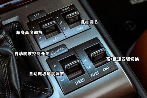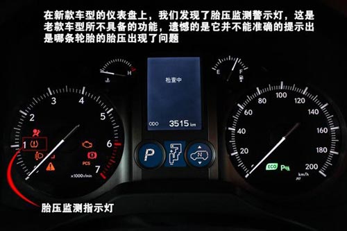 真皮加實(shí)木組合的方向盤握感很出色,支持四向電動調(diào)節(jié)以及電加熱功能,多動能按鍵布局合理,操作起來也很輕松。在點(diǎn)亮儀表盤時我們驚奇的發(fā)現(xiàn)了儀表盤中亮起了胎壓監(jiān)測警示燈,這是老款車型所不具備的裝置,不過可惜的是它并不能準(zhǔn)確的指示出是哪條輪胎出現(xiàn)了問題,略顯遺憾。另外,中央差速器鎖止按鍵在方向盤的右下方。