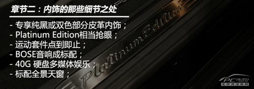 | 卡宴 鉑金版(Platinum Edition)與普通版標配差異——內飾 | |