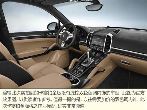◆ 卡宴鉑金版內飾有純黑、淺棕雙色可選
