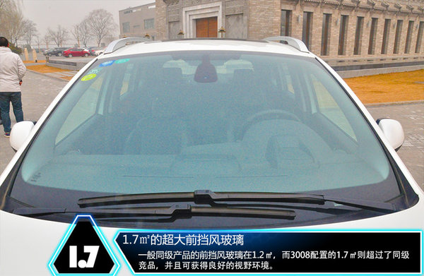 據彭?;⒅v師介紹,東風標致3008車型采用了面積達1.7㎡的超大前擋風玻璃。相比一般同級產品的1.2㎡而言大出許多,這一點將會幫助駕駛員獲得更加的視野環境,從而保證安全駕駛。這僅僅是只是預防安全中的一點,此外包括顯示屏位置靠上、A柱下方夾角采用透明玻璃以及結冰、未系安全帶等自動提示均可將危險防患于未然。
