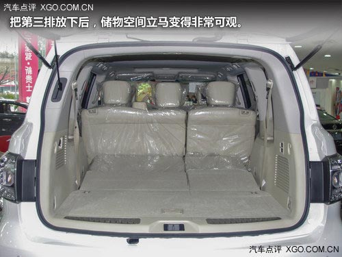 后尾箱容易非常充足,在不放下第三排座椅的時候,儲物空間已經非常不錯。在放下第三排空間之后,整個儲物空間非常可觀!