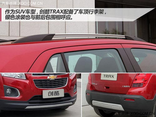 創酷TRAX采用了矩形的輪拱以及突出的輪眉設計,使得整車更傾向于硬朗,收窄的側窗更加強了這種感覺。后視鏡造型減小了對A柱視線的遮擋,側轉向燈被設計在了前翼子板上。作為SUV車型,創酷TRAX配備了車頂行李架,銀色涂裝也與前后包圍相呼應。