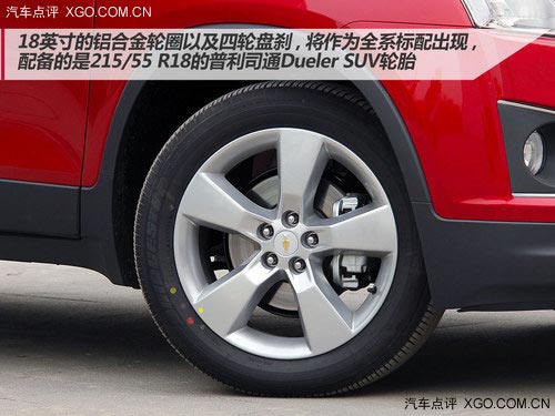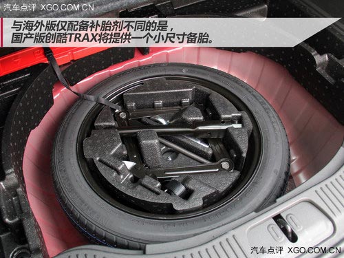 尺寸達到18英寸的鋁合金輪圈以及四輪盤剎,將作為全系標配出現,足顯創酷TRAX的誠意,配備的是215/55 R18的普利司通Dueler SUV輪胎,有效提升濕滑和冰雪路況下的行車表現以及泥濘道路上的脫困能力,與海外版僅配備補胎劑不同的是,國產版創酷TRAX將提供一個小尺寸備胎。