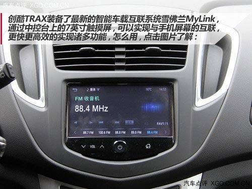 創酷TRAX裝備了最新的智能車載互聯系統雪佛蘭MyLink,這套系統首次搭載在愛唯歐影音版上,通過中控臺上的7英寸觸摸屏,可以實現與手機屏幕的互聯,更快更高效的實現諸多功能,有興趣可以點擊文章詳細了解。