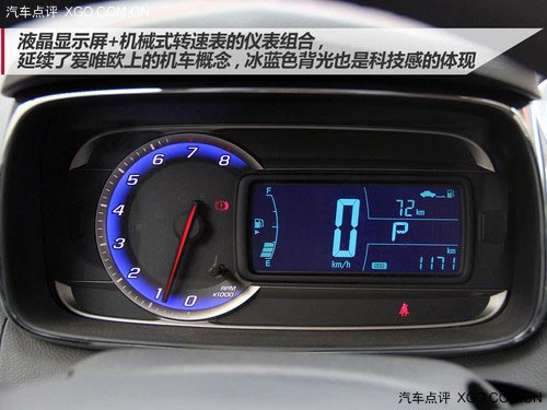 液晶顯示屏+機械式轉速表的儀表組合,延續了愛唯歐上的機車概念,同樣是一處年輕化的體現,冰藍色背光也是科技感的體現。