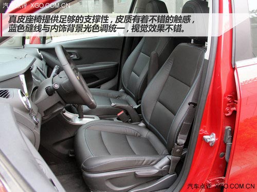 真皮座椅提供足夠的支撐性,皮質有著不錯的觸感,藍色縫線與內飾背景光色調統一,視覺效果不錯。實拍的車型為創酷TRAX的頂配車型,但主駕駛僅采用手動調節,但提供了單獨的扶手,可以看出創酷TRAX更注重務實配置的提升。