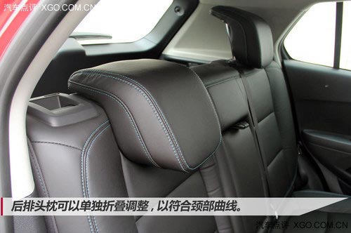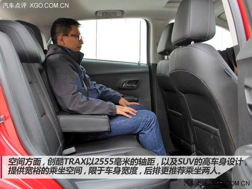 空間方面,創酷TRAX以2555毫米的軸距,以及SUV的高車身設計,提供十分寬裕的前后排乘坐空間,而限于車身寬度,后排更推薦乘坐兩人。后排頭枕可以單獨折疊調整,以符合頸部曲線。