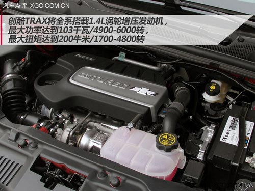 創酷TRAX將搭載1.4L渦輪增壓發動機,最大功率達到103千瓦/4900-6000轉,最大扭矩達到200牛米/1700-4800轉;傳動方面將分別匹配6速手自一體和6速手動變速器,官方給出的百公里綜合油耗為6.9升。