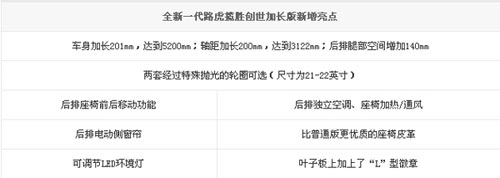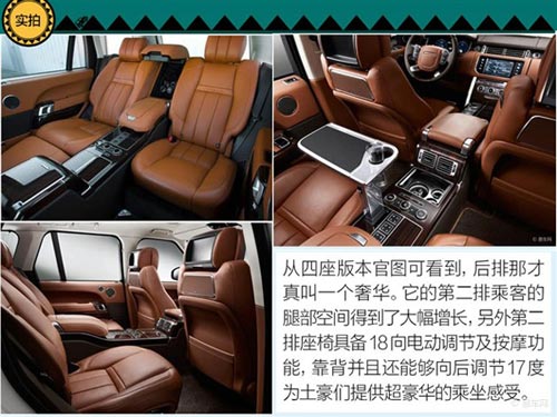 實拍攬勝長軸距版 滿足空間需求 最后編輯:時間:2014-04-14 09:13 來源:互聯網 全國 應該說路虎是非常愿意迎合市場的,甚至我可以大膽的想象是因為中國的土豪太多,影響到了路虎的設計師們,足足將本已足夠長的攬勝足足加長了200mm!推出了名為“全新一代攬勝創世加長版”車型,也就因為全新攬勝的加長,現在市場的格局似乎正在慢慢的改變,從前的攬勝從豪華SUV一舉慢慢躍升為專屬定制的豪華座駕,開始推出加長版來蠶食豪華轎車的市場份額,跨界挑戰奔馳S級、奧迪A8L等車型的霸主地位,而它究竟有什么能耐?談談看到這款車的第一感覺吧!用一句話廣東話來說,就是大到沒朋友!這句話的意思是......額,度娘找不到,大致就是說沒有對手了,沒人愿意跟你做朋友了。這句話可能略顯夸張了點,但當你坐進這款“全新一代攬勝創世加長版”(這名字實在太霸氣側漏了,下文都稱為攬勝加長版)的后排時,你真的能切實的感受到這種感覺。首先來看看全新一代路虎攬勝創世加長版相比普通版本都增加了哪些亮點的配置:_ueditor_page_break_tag_內飾:內飾設計偏向商務_ueditor_page_break_tag_空間:坐進車內它能滿足中國老板們的各種需求。還不夠?那就加裝吧。動力:沿用普通版攬勝動力系統,全地形反饋系統非常強大。編輯小結:其實我想攬勝加長版的本質目標根本不是做更加牛逼的豪華SUV,而是要跟BBA等標桿的豪華轎車競爭,讓潛在的消費者能有更豐富的車型選擇。所以,攬勝加長版是一臺需要有司機駕駛的“老板之車”,它既可以得體舒適地出席商務場合,又能提供更好的通過性以及高高在上的視野。中國土豪們,出手吧!