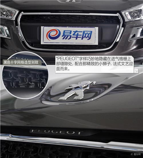 前臉采用家族式的設計,倒梯形狀的進氣格柵用鍍鉻裝飾,鍍鉻條四周有間隙,這種懸浮式的設計極具個性。黑色十字網(wǎng)格造型別致,"PEUGEOT"字樣巧妙地隱藏在進氣格柵上部縫隙處,配合那精致的小獅子,法式文藝迎面而來。