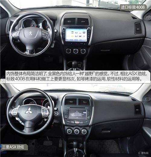 標致4008是基于進口三菱ASX勁炫平臺打造而成,在內(nèi)飾上,延續(xù)了三菱ASX勁炫的設計,無論是中控布局還是方向盤、儀表盤,兩者都極其相似。