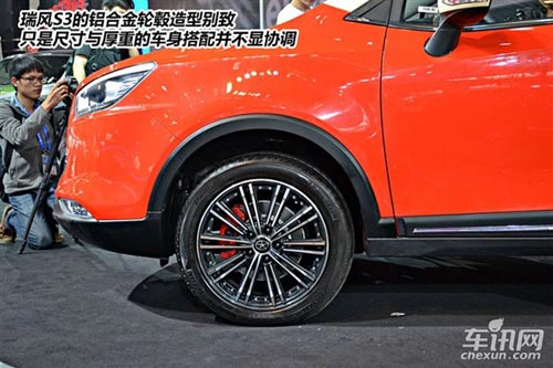 瑞風S3的鋁合金輪轂造型別致,只是尺寸與厚重的車身搭配并不顯協調,本就底盤不高,再搭個小輪子,通過性還要不要了?你可是SUV啊!這方面的成功案例可以借鑒一下別克昂科拉,它搭配的18英寸輪轂效果要好很多。