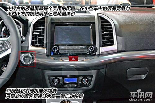 中控臺的液晶屏幕是個實用的配置,在小型車中也很有競爭力,不過下方的按鈕質感還是稍顯廉價。另外瑞風S3還配備了發動機啟停開關,不仔細看很容易誤認為是一鍵啟動功能。
