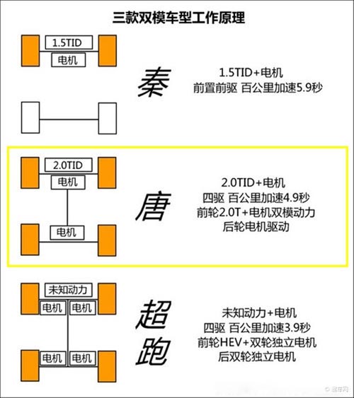 當然,“雙模三擎”并不是比亞迪“542”計劃的終點。在2015年發布的“漢”(即比亞迪首款超跑)上,比亞迪將為其裝備四個輪上電機,形成一個未知動力發動機+四個電動機組成的“雙模五擎”動力組合。